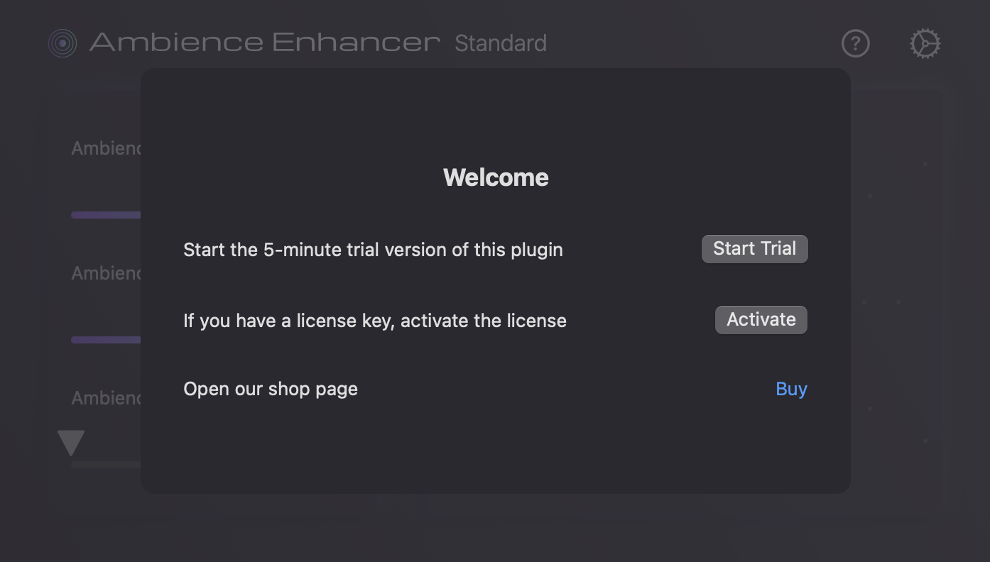 From the Welcome screen that appears when you start Ambience Enhancer, select Activate to display the License Activation screen.
